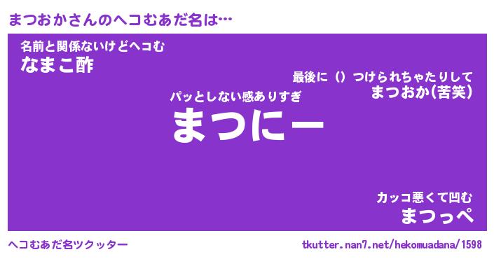 | 意味不明あだ名 | 『ペロリンまつおか』『永久保存まつおか』 |