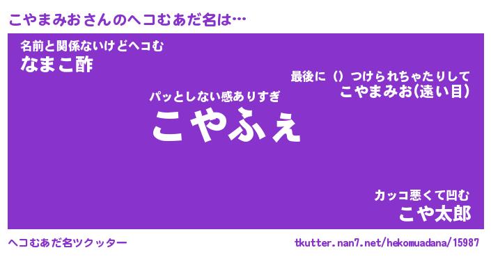 | ファンタジー風あだ名 | 『コヤフェル』『エターナルコヤマミオー』 |