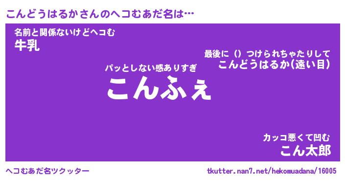 | 男性向けラノベタイトル風あだ名 | 『こんどうはるかの憂鬱』 |