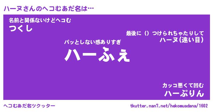 | ポケモン風あだ名 | 『ハーチュウ』『ハーヌダネ』 |
