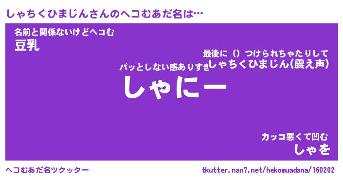 | 恥ずかしいあだ名 | 『プリティーしゃちくひまじん』 |