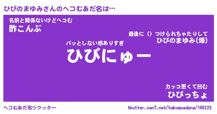 | ヒーロー風カッコイイあだ名 | 『スーパーヒビノマユミ』『天弓騎士ヒビ』 |