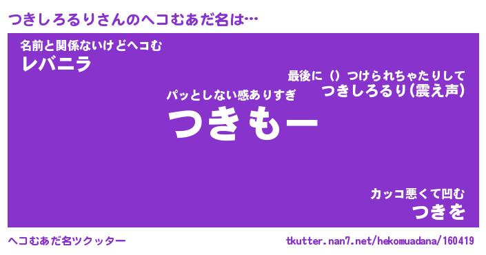 | ヒーロー風カッコイイあだ名 | 『スーパーツキシロルリ』『魔戒騎士ツキ』 |