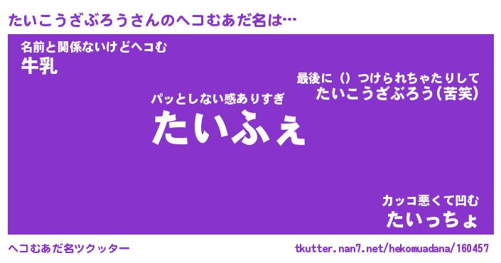 | 意味不明あだ名 | 『ペロリンたいこうざぶろう』 |