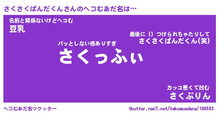 | 伝説のあだ名 | 『伝説のスナイパーさくさくぱんだくん』 |