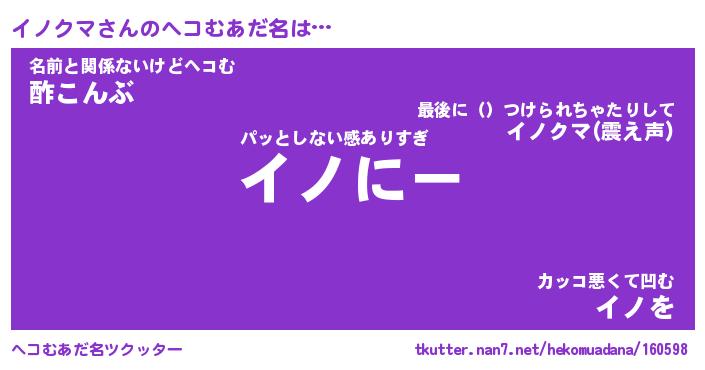 | 意味不明あだ名 | 『ペロリンイノクマ』『永久保存イノクマ』 |