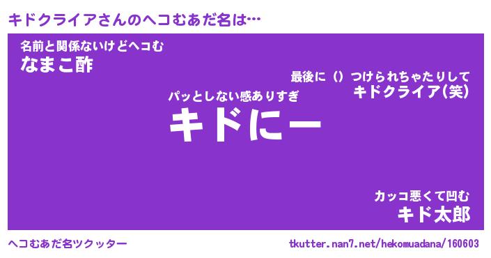 | ヒーロー風カッコイイあだ名 | 『スーパーキドクライア』『銀牙騎士キド』 |