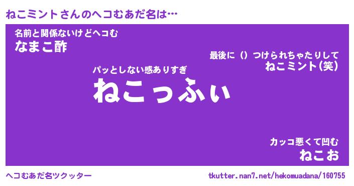 | 伝説のあだ名 | 『伝説のスナイパーねこミント』 |