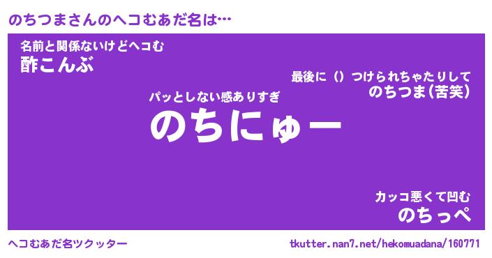 | 男性向けラノベタイトル風あだ名 | 『のちつまの憂鬱』 |