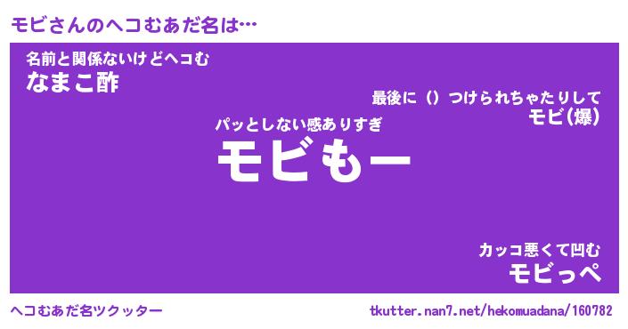 | 男性向けラノベタイトル風あだ名 | 『モビの憂鬱』『ノーゲーム・ノーモビ』 |
