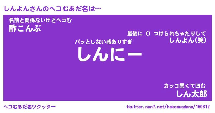 | 意味不明あだ名 | 『ペロリンしんよん』『永久保存しんよん』 |