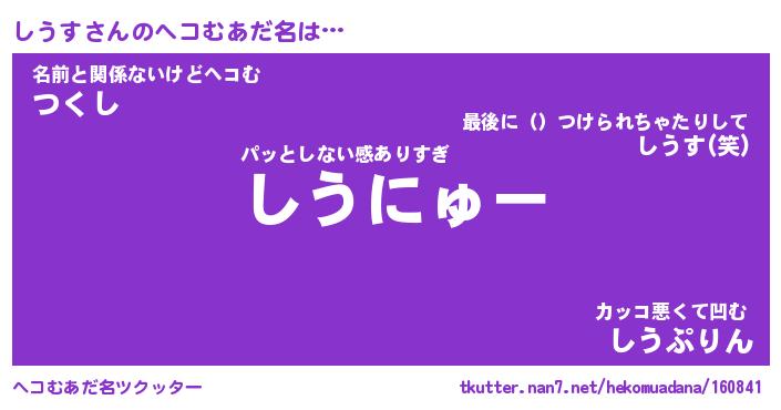 | 意味不明あだ名 | 『ペロリンしうす』『しうすフォーエバー』 |