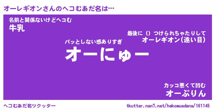 | 男性向けラノベタイトル風あだ名 | 『オーレギオンの憂鬱』 |