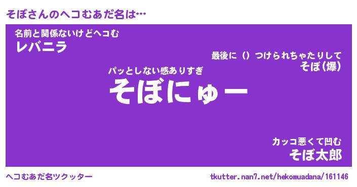 | ファンタジー風あだ名 | 『ソボフェル』『エターナルソボー』 |