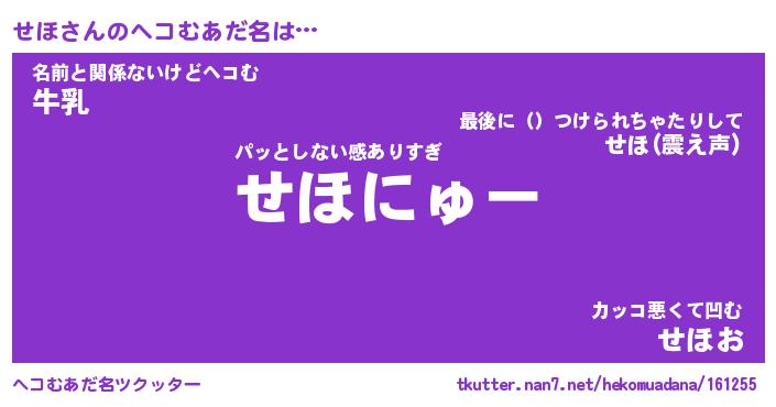 | 意味不明あだ名 | 『ペロリンせほ』『せほフォーエバー』 |