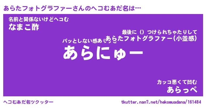 | 恥ずかしいあだ名 | 『プリティーあらたフォトグラファー』 |