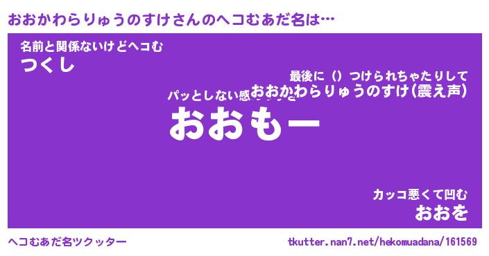| 胡散臭い通販商品みたいなあだ名 | 『モテモテ間違いなし霊験あらたかなお札…その名も「おおかわらりゅうのすけ」』 |