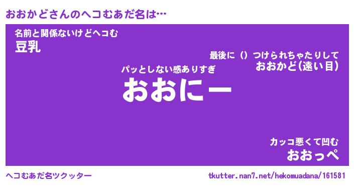 | 意味不明あだ名 | 『ペロリンおおかど』『永久保存おおかど』 |