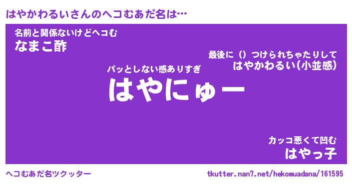 | 恥ずかしいあだ名 | 『プリティーはやかわるい』『はやっちょ』 |
