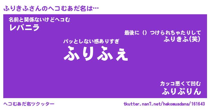 | 意味不明あだ名 | 『ペロリンふりきふ』『永久保存ふりきふ』 |