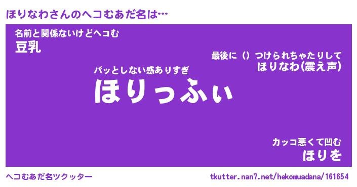 | 意味不明あだ名 | 『ペロリンほりなわ』『永久保存ほりなわ』 |