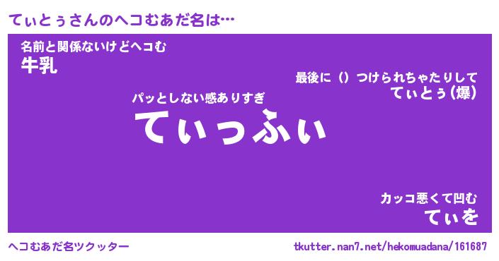 | 意味不明あだ名 | 『ペロリンてぃとぅ』『永久保存てぃとぅ』 |