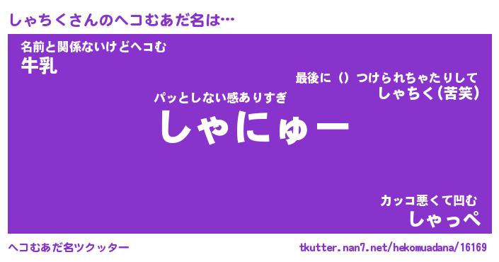 | 欧米人風あだ名 | 『マイケルしゃちく』『ウサインしゃちく』 |