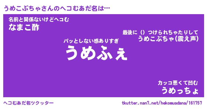 | ポケモン風あだ名 | 『ウメチュウ』『ウメコダネ』 |