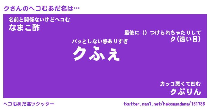 | ファンタジー風あだ名 | 『クフェル』『エターナルクー』 |