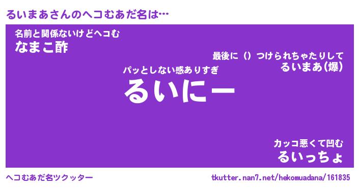 | 意味不明あだ名 | 『ペロリンるいまあ』『永久保存るいまあ』 |