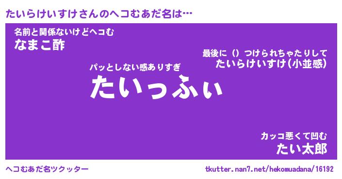 | ヒーロー風カッコイイあだ名 | 『スーパータイラケイスケ』 |