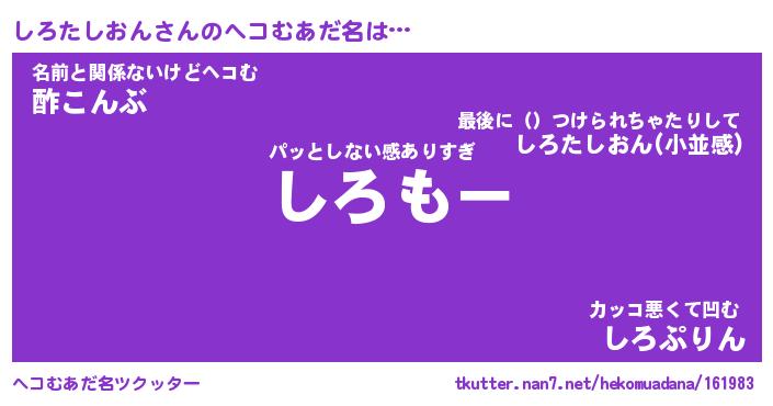 | 意味不明あだ名 | 『ペロリンしろたしおん』 |