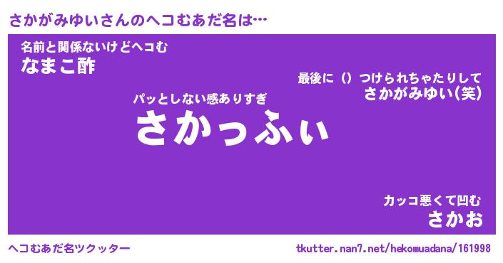 | 胡散臭い通販商品みたいなあだ名 | 『億万長者になれる霊験あらたかなお札…その名も「さかがみゆい」』 |