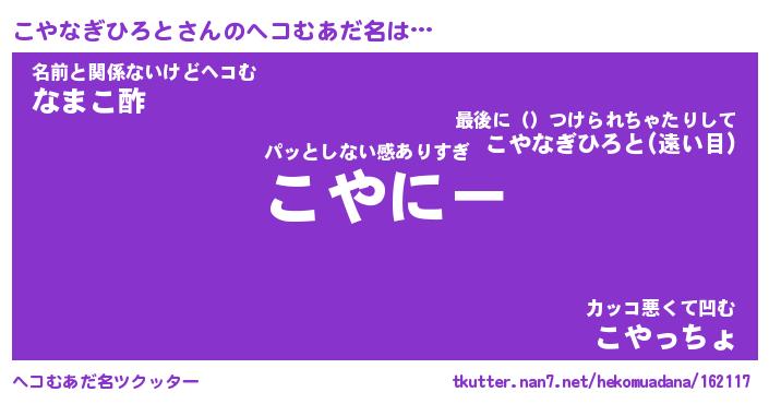 | 恥ずかしいあだ名 | 『プリティーこやなぎひろと』『こやちん』 |
