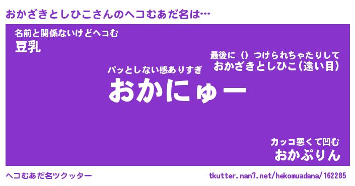 | 男性向けラノベタイトル風あだ名 | 『おかざきとしひこの憂鬱』 |