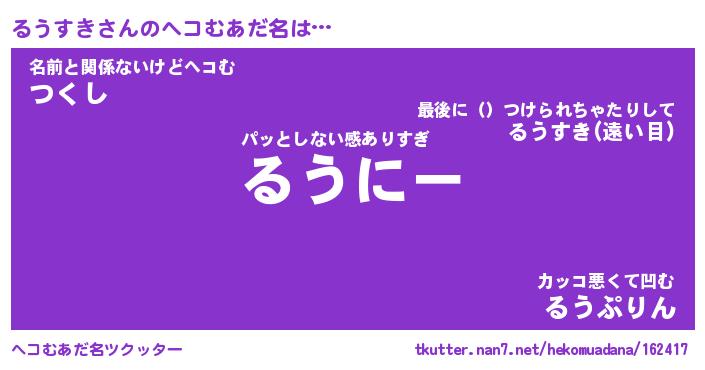 | ポケモン風あだ名 | 『ルウチュウ』『ルウスダネ』 |