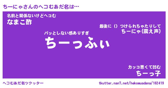 | ポケモン風あだ名 | 『チーチュウ』『チーニダネ』 |