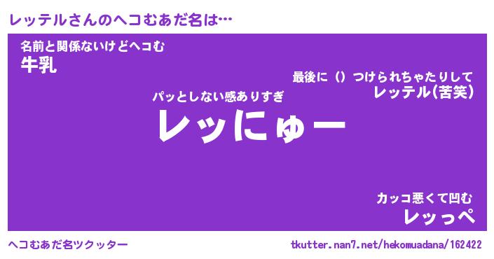 | ファンタジー風あだ名 | 『レッフェル』『エターナルレッテルー』 |