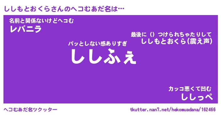 | ポケモン風あだ名 | 『シシチュウ』『シシモダネ』 |