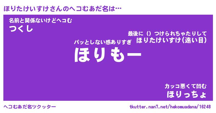 | 男性向けラノベタイトル風あだ名 | 『ほりたけいすけの憂鬱』 |
