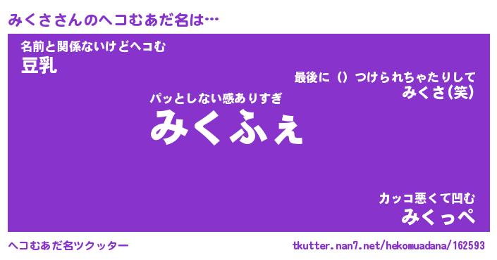 | ファンタジー風あだ名 | 『ミクフェル』『エターナルミクサー』 |