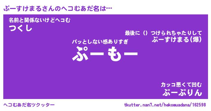 | 意味不明あだ名 | 『ペロリンぷーすけまる』 |