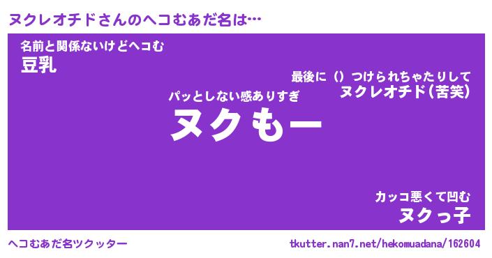 | ポケモン風あだ名 | 『ヌクチュウ』『ヌクレダネ』 |