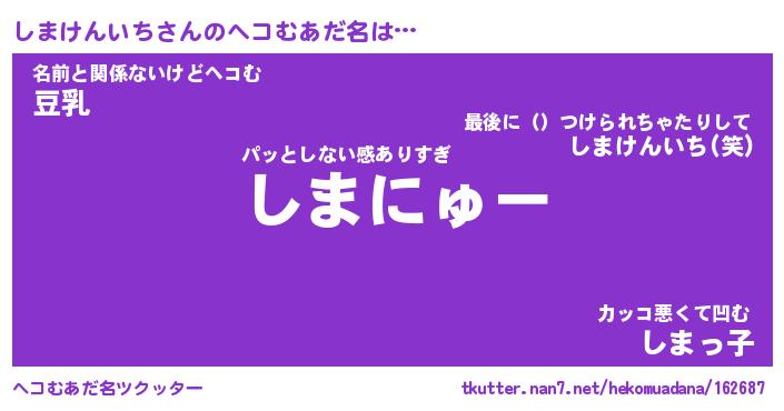 | 意味不明あだ名 | 『ペロリンしまけんいち』 |