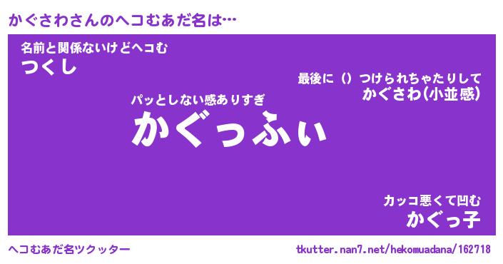 | 意味不明あだ名 | 『ペロリンかぐさわ』『永久保存かぐさわ』 |