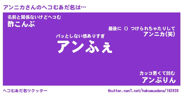 | ファンタジー風あだ名 | 『アンフェル』『エターナルアンニカー』 |