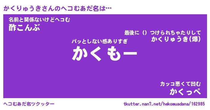 | 男性向けラノベタイトル風あだ名 | 『かくりゅうきの憂鬱』 |