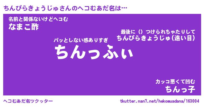 | 2回繰り返すあだ名 | 『ちんちん』『ちちんん』『こつこつ』 |