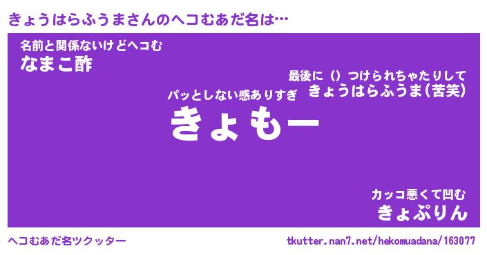 | 胡散臭い通販商品みたいなあだ名 | 『億万長者になれる水晶球…その名も「きょうはらふうま」』 |