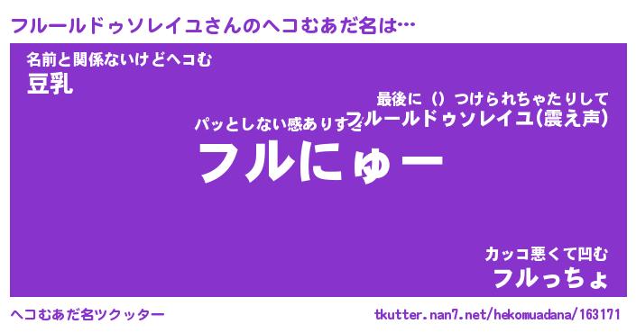 | 2回繰り返すあだ名 | 『フルフル』『フフルル』『うるうる』 |